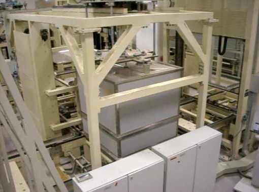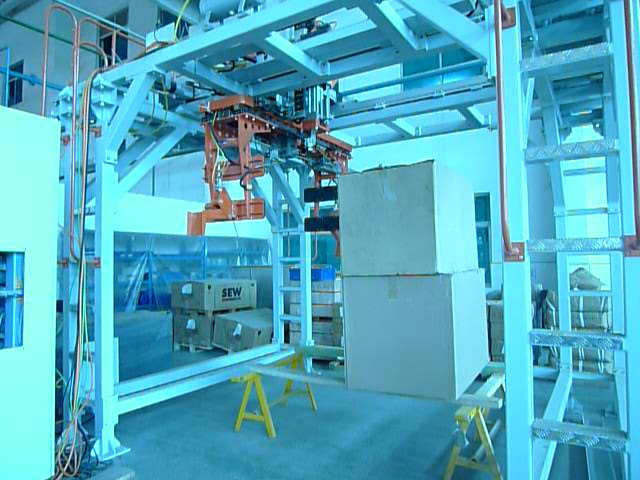 周轉(zhuǎn)箱碼分機(jī)1.主要功能周轉(zhuǎn)箱碼分機(jī)是一種用于煙絲箱式存儲(chǔ)自動(dòng)化物流系統(tǒng)中,完成兩個(gè)煙絲箱的疊箱或者分箱操作的設(shè)備。2....
