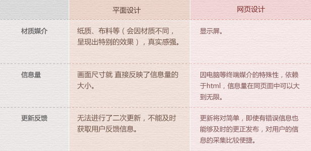 平面設(shè)計屬于比較傳統(tǒng)的信息媒介設(shè)計,一般會通過張貼、銷售、郵寄派送等形式進(jìn)行傳播,這樣傳播的方式范圍小且成本較高,相對而言在這方面網(wǎng)頁設(shè)計的信息傳播能力卻非常的強(qiáng),但依賴于第三方媒介的支持,平面設(shè)計卻擁有更為廣泛的受眾人群,不同的年齡層對于紙張或書本的信息接受能力總是強(qiáng)于網(wǎng)絡(luò)媒體的,畢竟網(wǎng)絡(luò)信息獲取的將會存在一個學(xué)習(xí)成本,在今后網(wǎng)絡(luò)信息的不斷普及以及終端媒介用戶體驗(yàn)的不斷提升,在受眾人群方面在我看來差距會越來越小。
